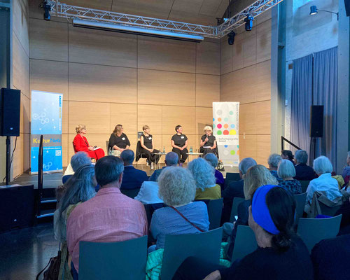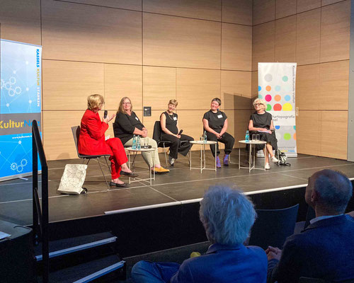 Die Moderatorinnen Barbara Ettinger-Brinckmann und Prof. Dr. Heidi Möller informierten das Publikum über die beeindruckenden beruflichen Stationen und Erfolge, die alle drei Gesprächsgäste vorzuweisen haben. Man erfuhr viel Interessantes über die verschiedenen Institutionen, die im Kasseler Palais Bellevue ansässig sind. Eine Zusammenarbeit fand bereits in der Vergangenheit statt. Zukünftig wird Helen MacCormac die Schwangerschaftsvertretung für Frau Blando bei der Stiftung Brückner-Kühner übernehmen. Regine Hawellek